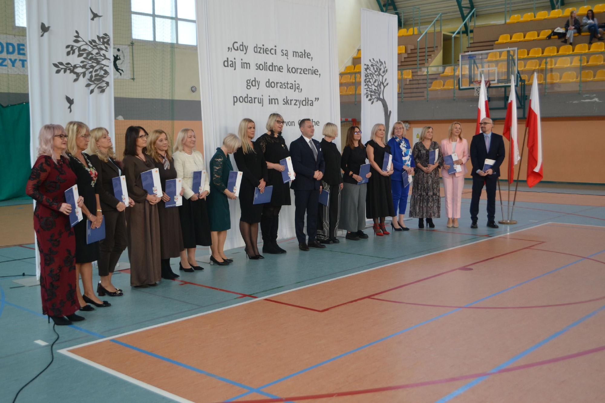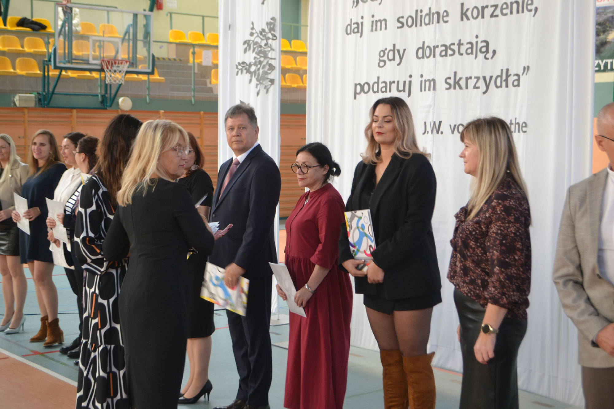Następnie pani Dyrektor Małgorzata Afanasjew wręczyła nagrody nauczycielom i pracownikom naszej szkoły, wyrażając wdzięczność za ich oddanie, kreatywność i budowanie wyjątkowej atmosfery w szkolnej wspólnocie. Był to moment pełen wzruszeń dla nagrodzonych i dla wszystkich obecnych.