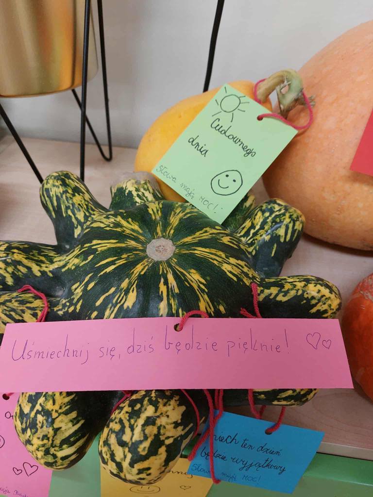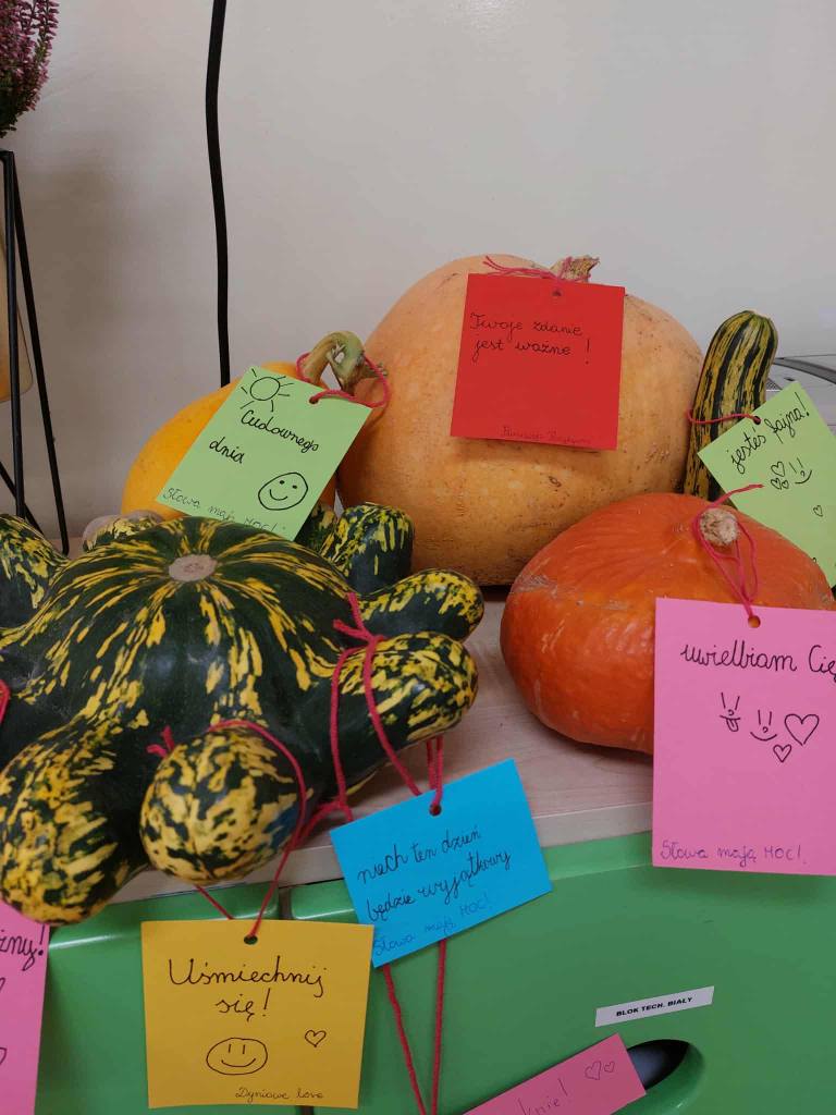 - zorganizowaliśmy akcję „Dyniowe love”, ozdabiając dynie dobrymi słowami,