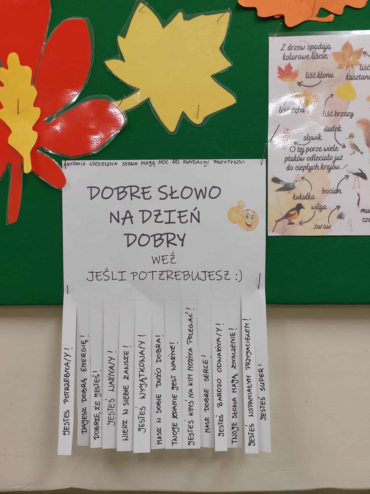 - wykonaliśmy tablicę „Dobre słowo na dzień dobry” z miłymi kartkami do oderwania,