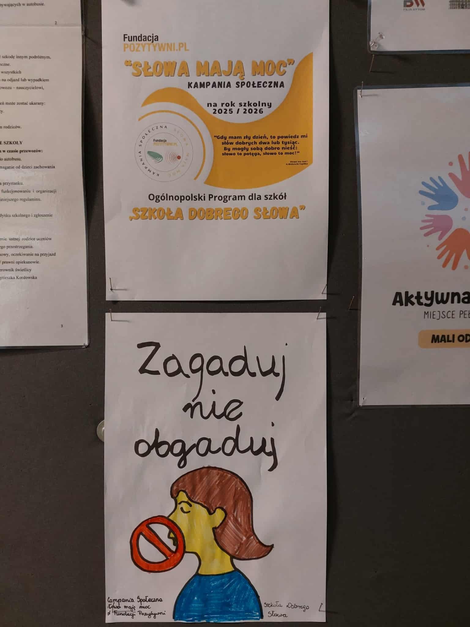 - stworzyliśmy plakaty i komiksy pod hasłem „Dobre słowa mają moc”,