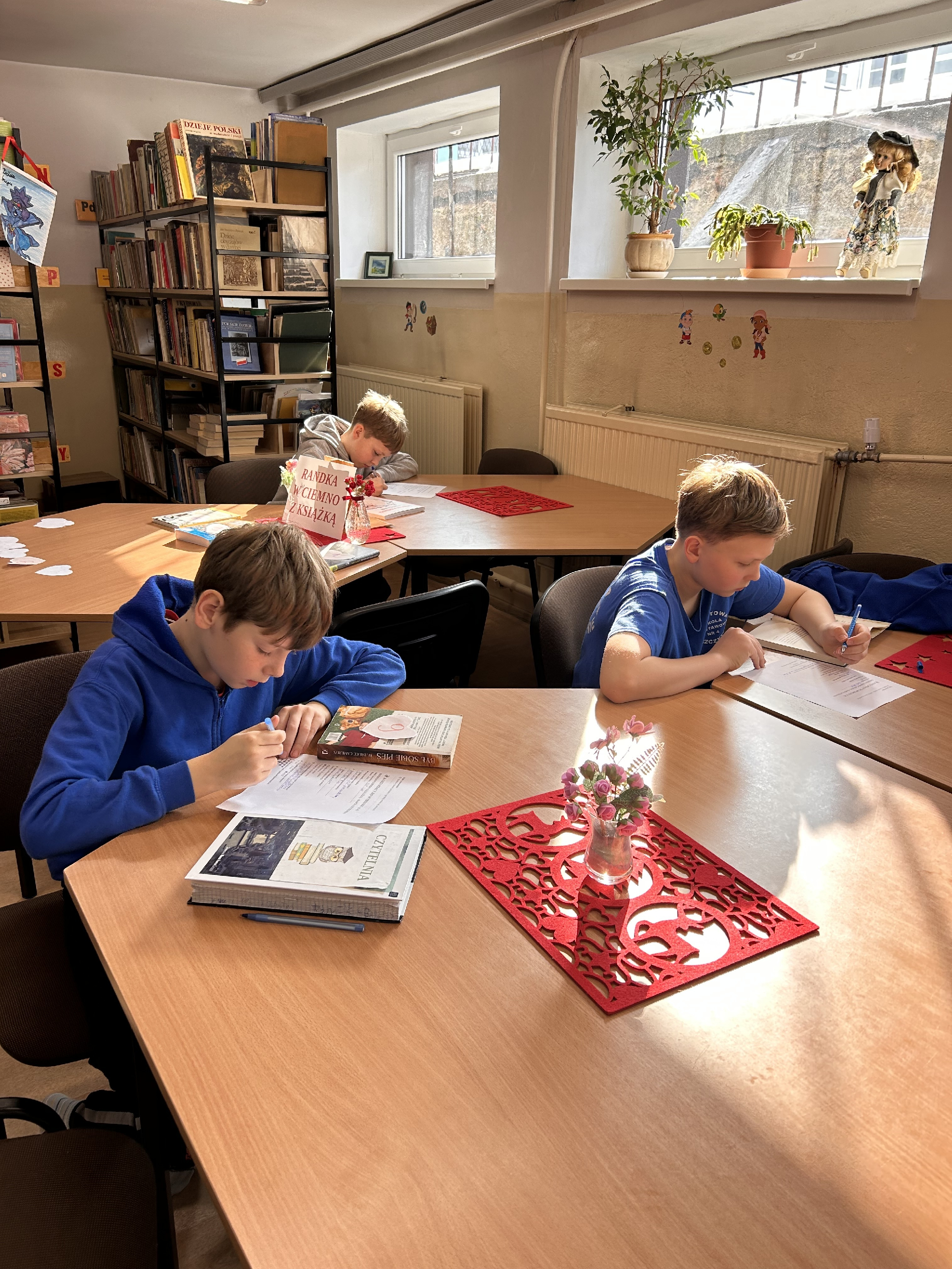 W bibliotece szkolnej, z okazji zbliżających się Walentynek, odbyła się wyjątkowa uroczystość pod hasłem „Randka w ciemno z książką”, w której wzięli udział uczniowie klas VI.
