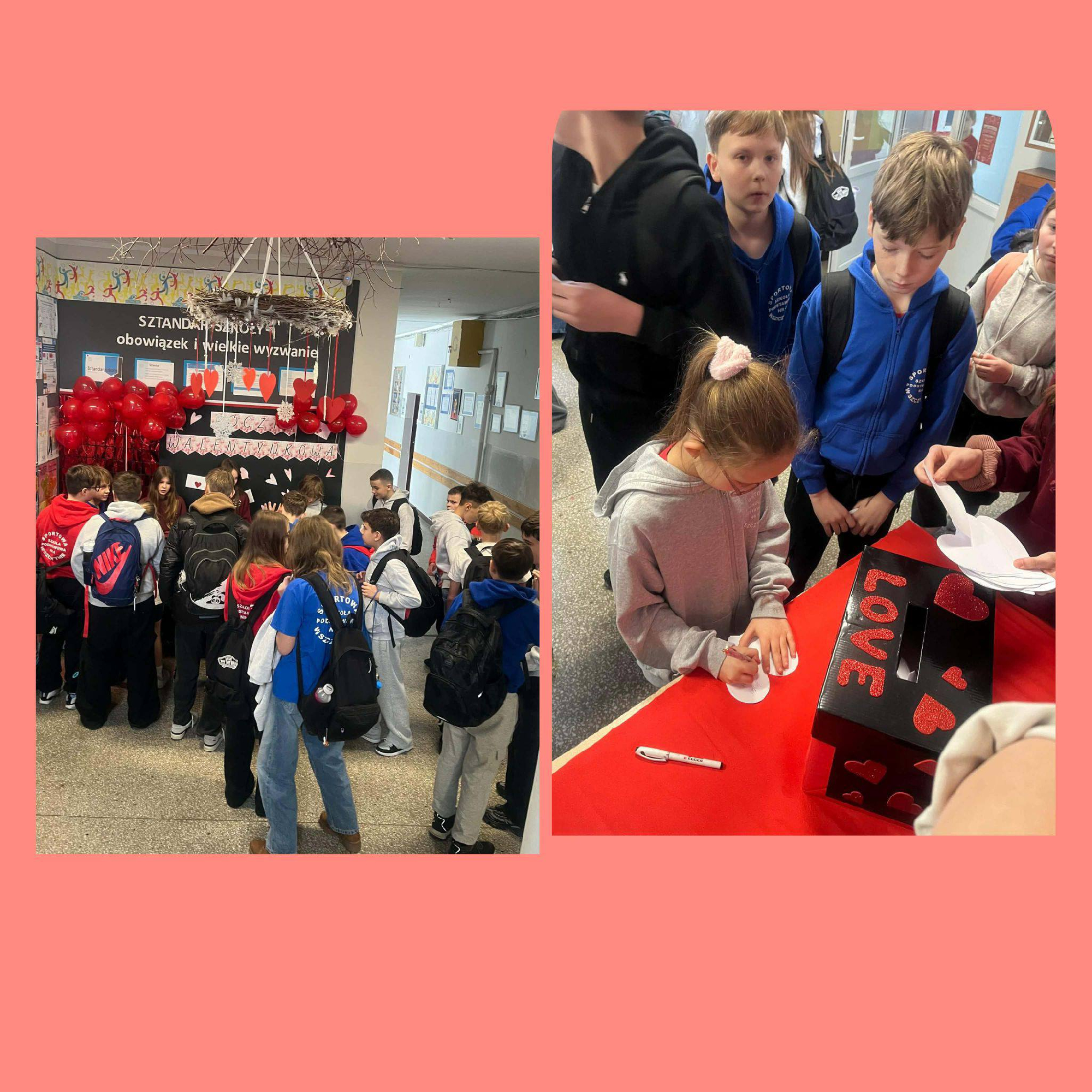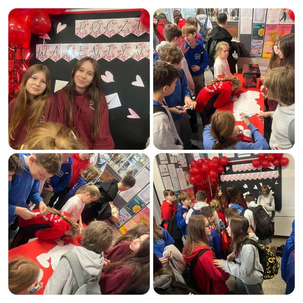 W piątek 13 lutego działała w naszej szkole poczta walentynkowa. Uczniowie z ogromnym zaangażowaniem wrzucali swoje kartki walentynkowe  do specjalnie przygotowanej skrzynki , a następnie walentynki zostały rozniesione przez uczniów po klasach.