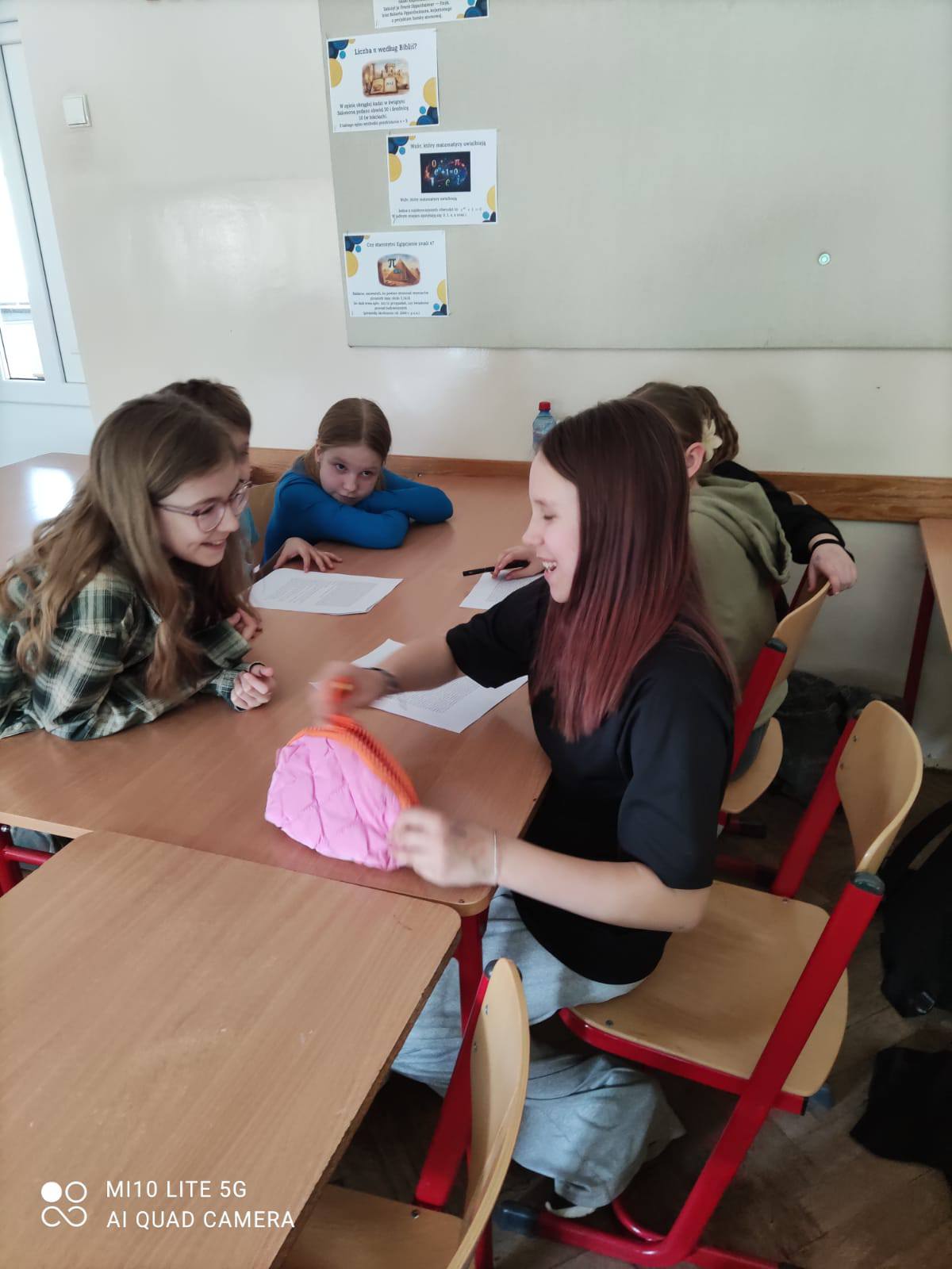 Najmłodsi uczestnicy matematycznych obchodów, czyli uczniowie klasy 5, również obejrzeli film o liczbie π. Po projekcji otrzymali kreatywne zadania polegające na kolorowaniu i odszyfrowywaniu ukrytych informacji. Dzięki temu mogli stopniowo odkrywać kolejne cyfry rozwinięcia liczby π, łącząc naukę z zabawą.