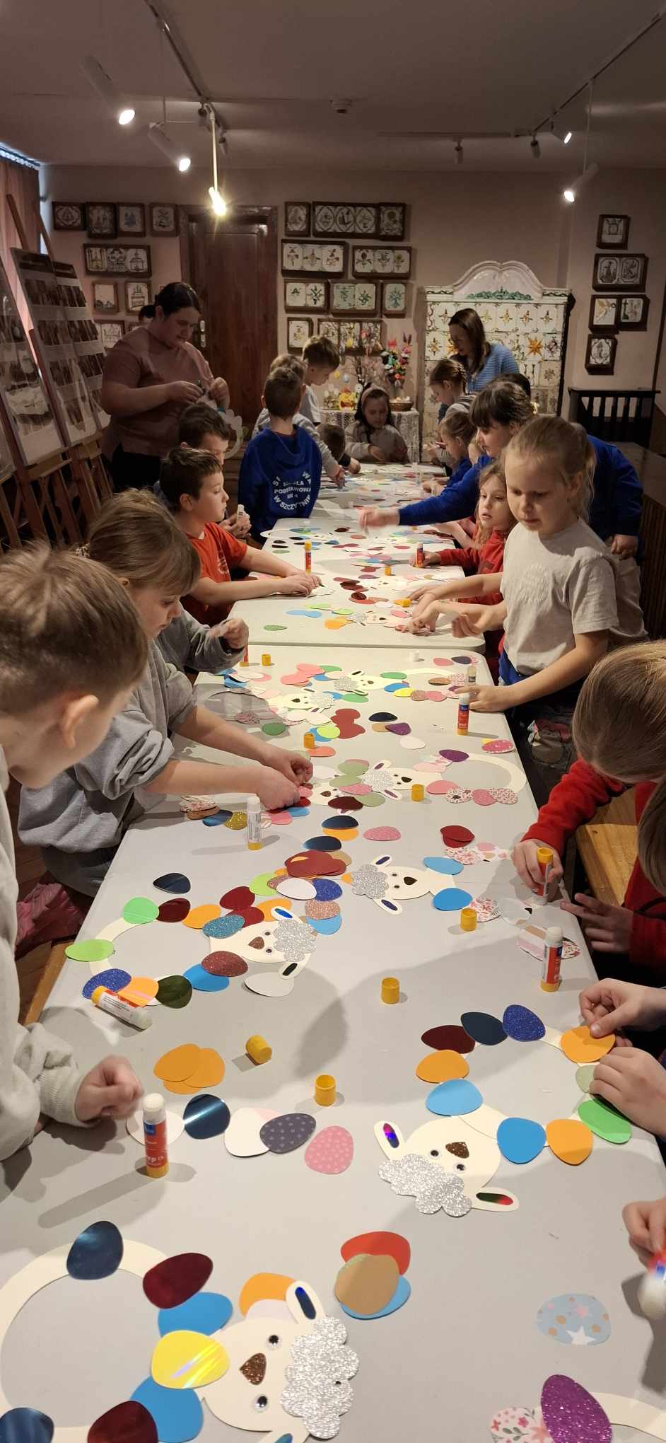 Naszą przygodę rozpoczęliśmy od ciekawostek o zwyczajach wielkanocnych w naszym regionie – było bardzo interesująco! Następnie zakasaliśmy rękawy i z ogromnym zaangażowaniem zabraliśmy się do pracy. Powstały piękne, kolorowe zawieszki – każda inna i wyjątkowa. Wycinanie, klejenie i wspólne tworzenie sprawiło nam mnóstwo radości!