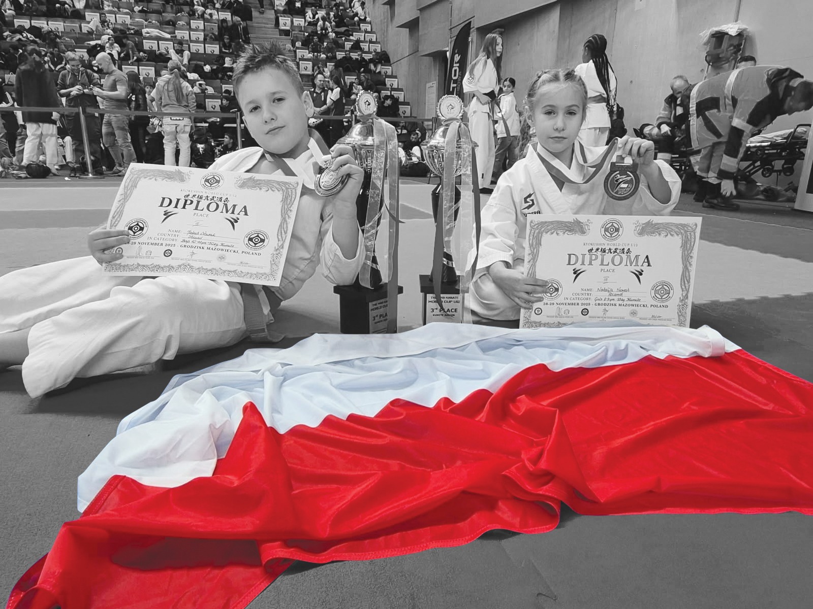Droga do Sukcesu - Historie Naszych Uczniów Sukcesy rodzeństwa Nowaków w Karate Kyokushin! Z ogromną dumą i radością dzielimy się wspaniałymi osiągnięciami sportowymi Natalii Nowak (kl. II a) i Jakuba Nowaka (kl. IV a) uczniów naszej Szkoły. Mistrzostwa Świata i Puchar Świata U12 WKB Poland W dniach 28–29 listopada 2025 r. w Grodzisku Mazowieckim rywalizowało ponad 1400 zawodników z 36 krajów! Natalia i Jakub pokazali ogromny charakter i determinację, zdobywając brązowe medale w kumite w swoich kategoriach wiekowych Wicemistrzostwo Europy W grudniu 2024 r., podczas WKB Mistrzostw Europy Open w Leżajsku, rodzeństwo zdobyło tytuły Wicemistrzów Europy, potwierdzając swoją przynależność do czołówki młodych karateków. Ogólnopolski Turniej Kumite – Mistrzostwo Polski 8 marca 2026 r. w Górze Kalwarii Natalia i Jakub nie mieli sobie równych – w pięknym stylu zdobyli złote medale i tytuły mistrzowskie w swoich kategoriach! Ich sukcesy to efekt wielu lat ciężkiej pracy, wyrzeczeń i niezwykłej determinacji. Serdecznie gratulujemy Natalii i Jakubowi! Życzymy dalszych sukcesów, niegasnącej pasji i spełnienia sportowych marzeń!