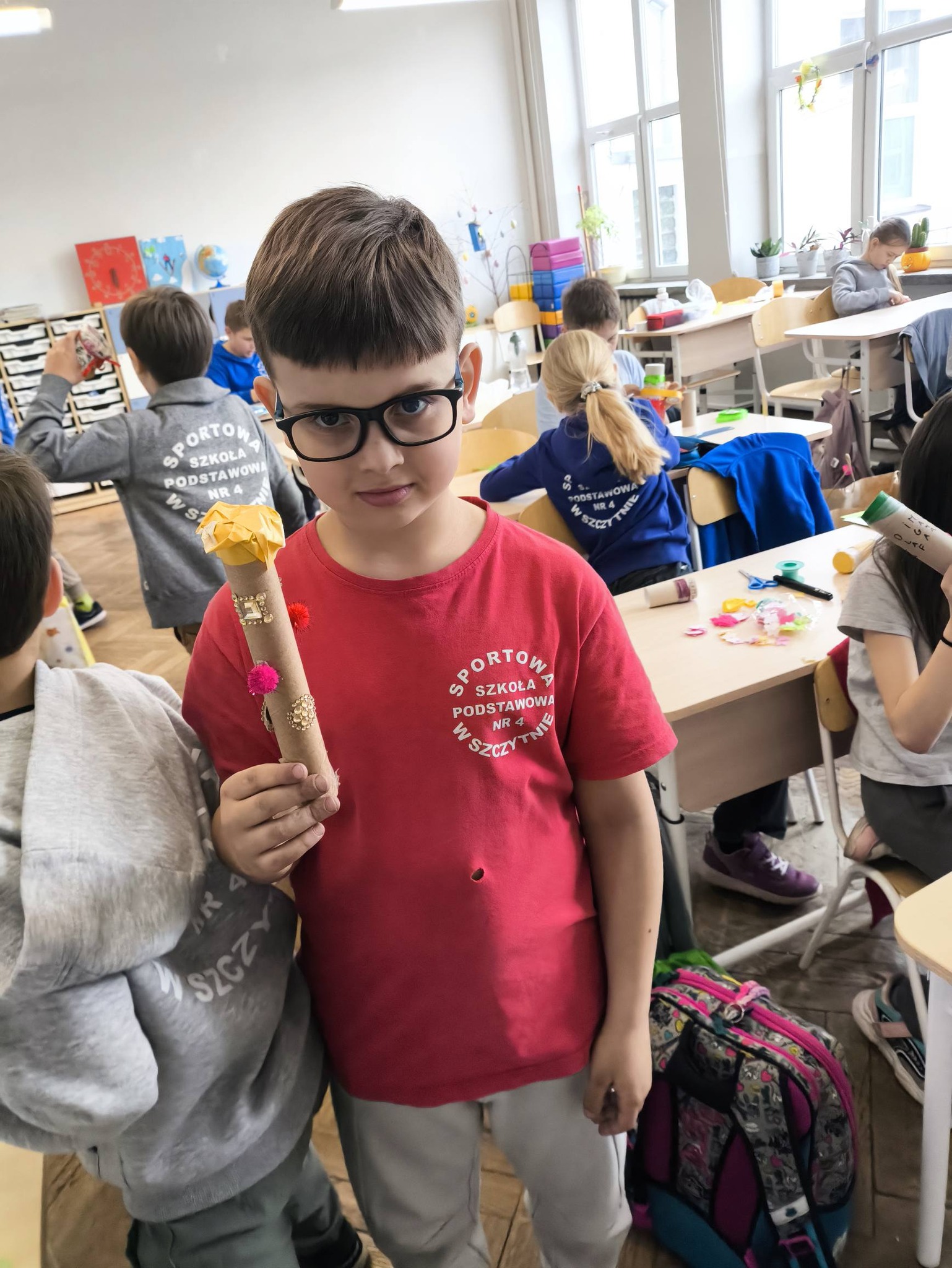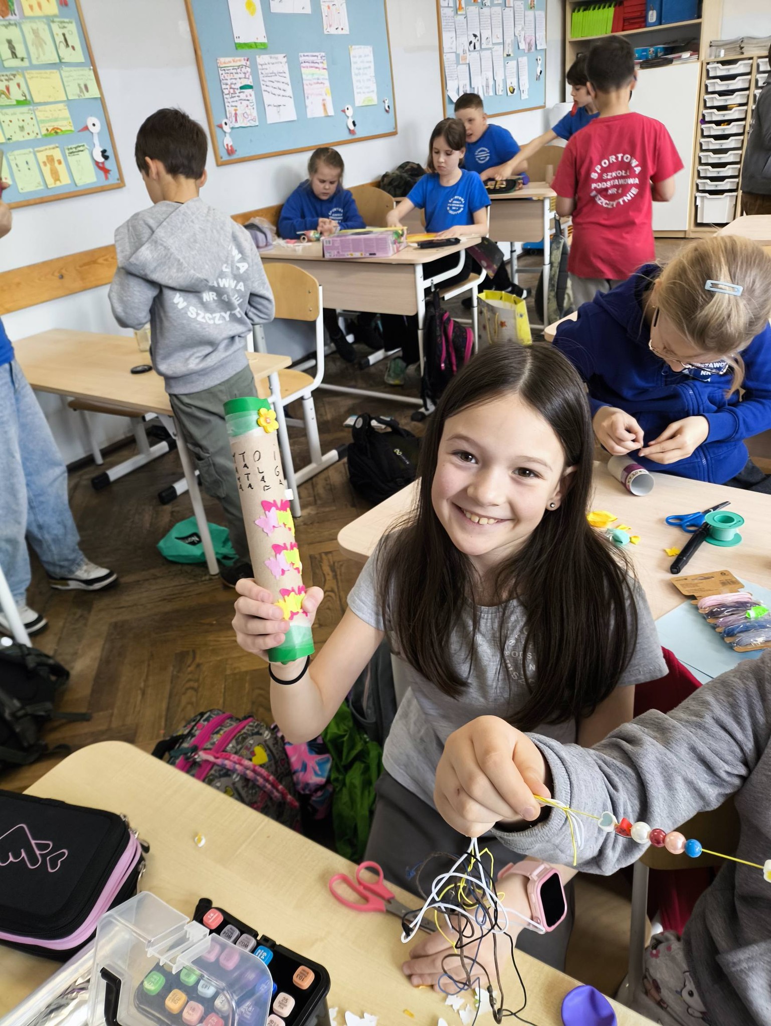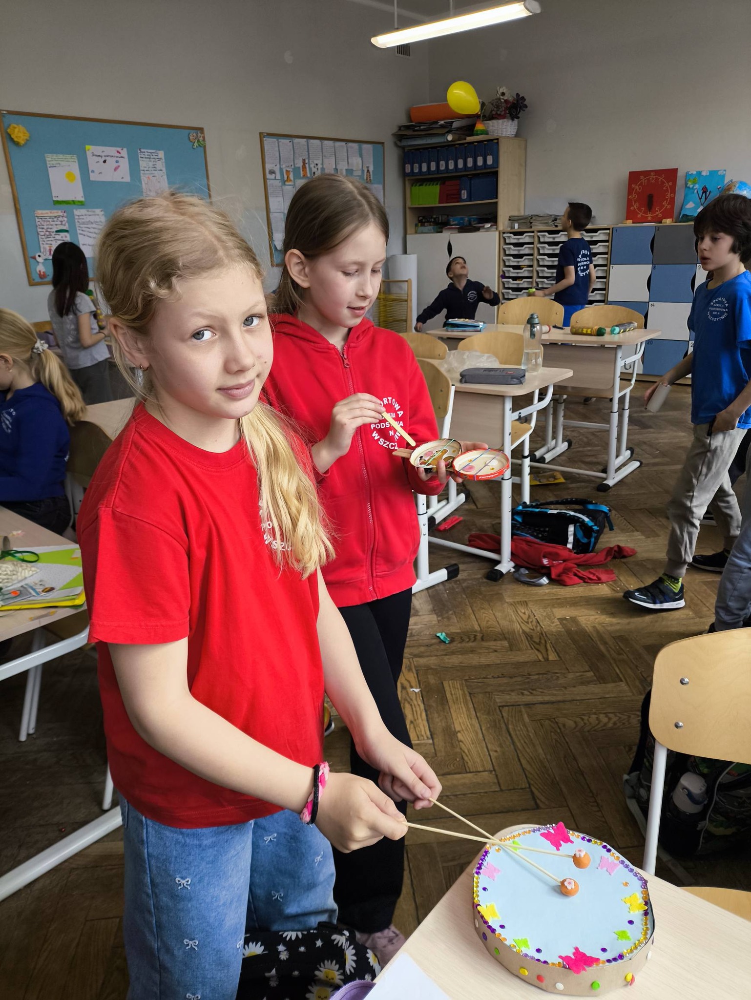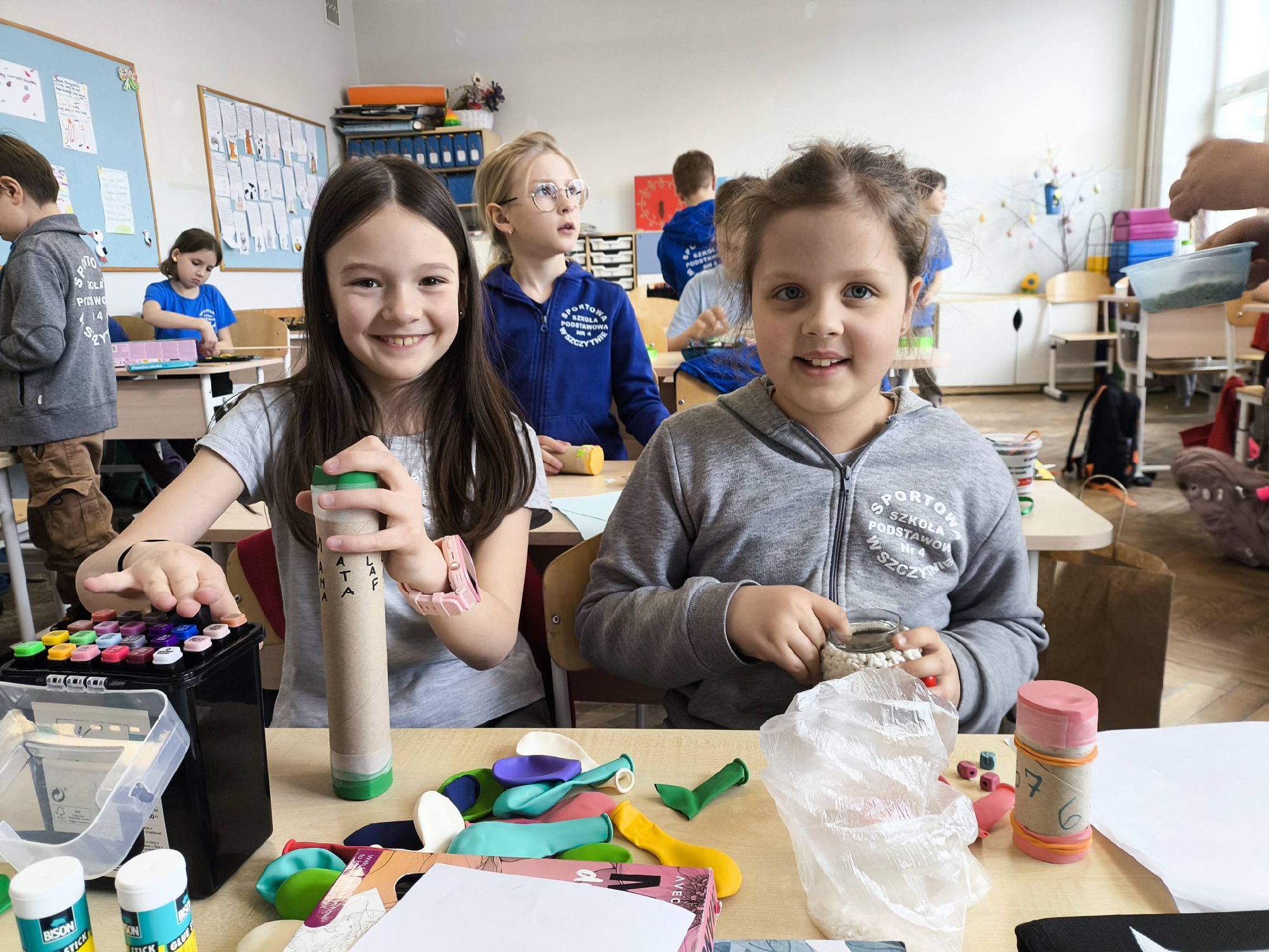 W klasie 2b, w ramach edukacji muzycznej, uczniowie stworzyli swoje instrumenty z materiałów dostępnych w każdym domu.