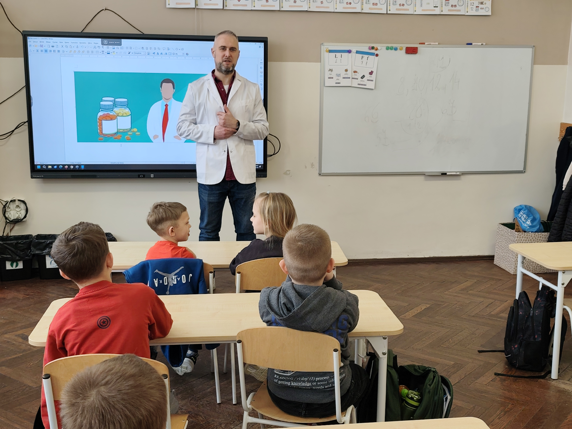 Przejdź do aktualnościW dniu 20 lutego uczniowie klasy 1a mieli wyjątkową okazję spotkać się z farmaceutą – panem Pawłem Bieńkowskim, który na co dzień pracuje w jednej z aptek w Szczytnie. Wizyta była nie tylko ciekawa, ale również bardzo pouczająca.