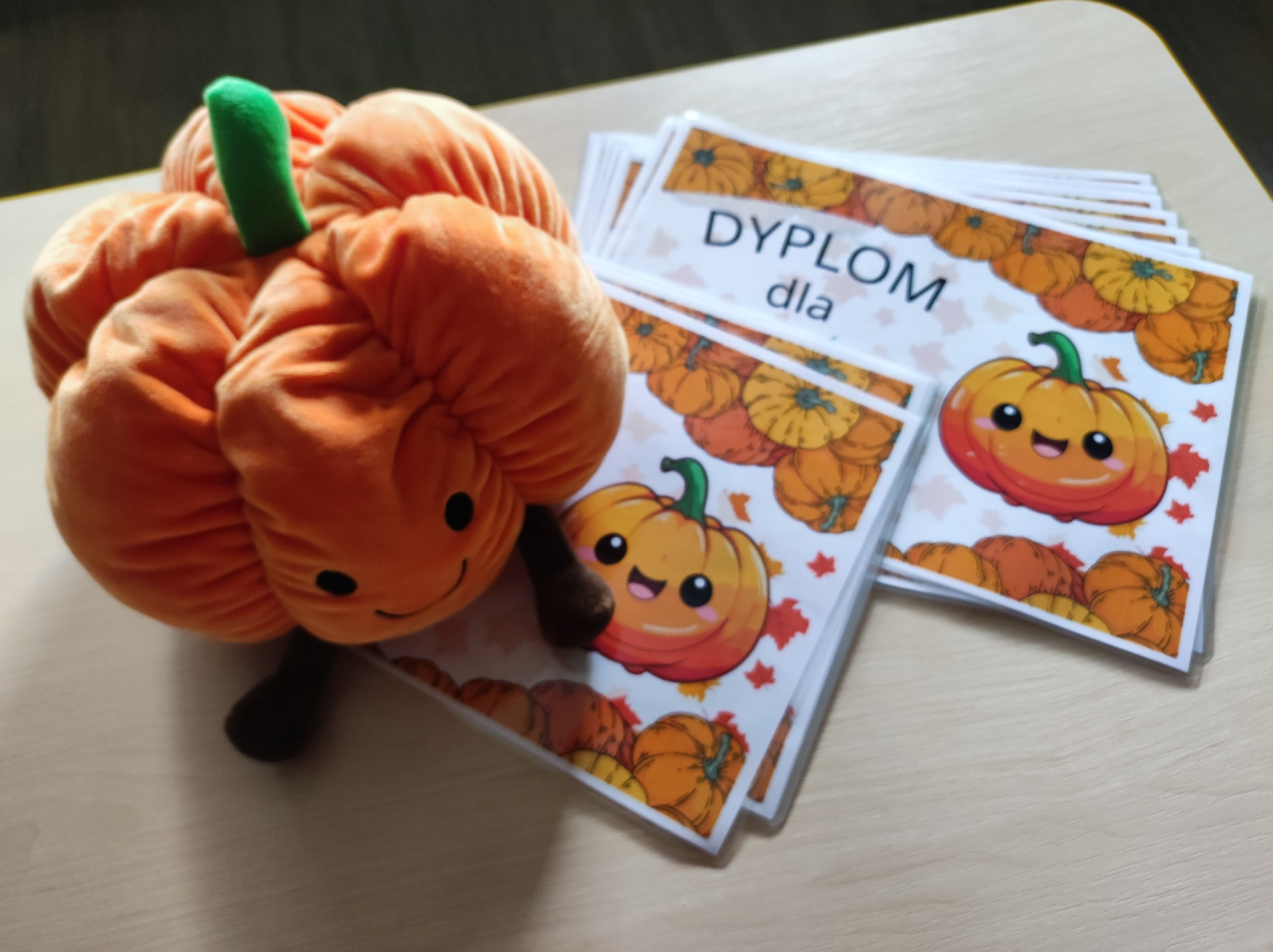 31października dzieci z grupy "Jagódki" przybyły do sali w pięknych pomarańczowych stylizacjach. Podczas obchodów Dnia Dyni dzieciaki brały udział we wspólnych zabawach - za co na zakończenie każde z nich otrzymało drobny upominek w postaci dyplomu.