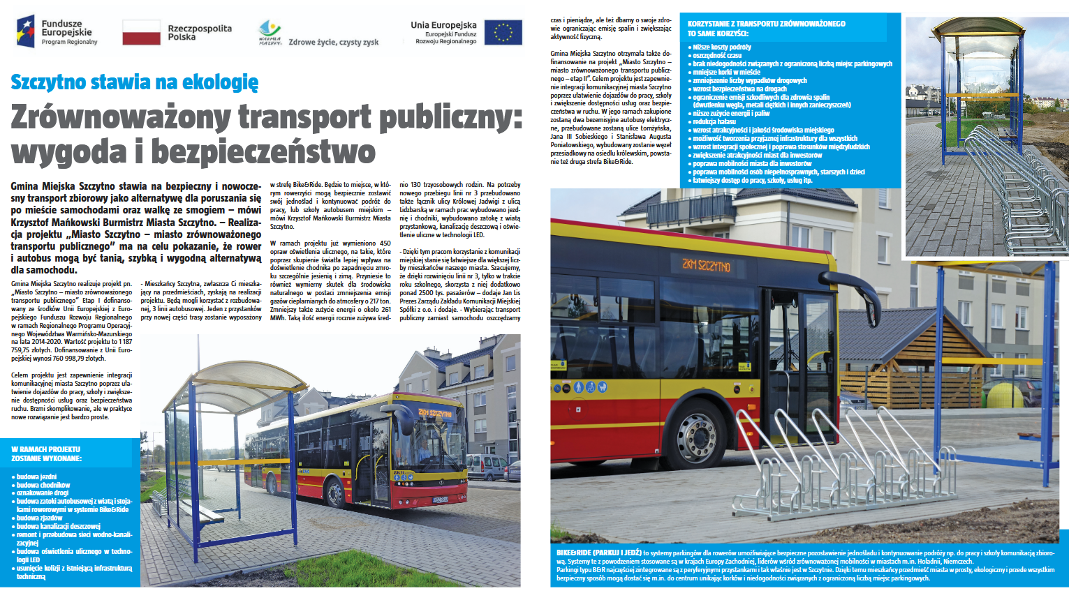 Przejdź do aktualnościGmina Miejska Szczytno realizuje projekt dofinansowany z Funduszy Europejskich pn. „Miasto Szczytno – miasto zrównoważonego transportu publicznego” - etap II